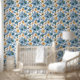 Discover the tranquil charm of nature with our new wallpaper design, where classic blue roses intertwine with vibrant golden yellow blossoms against a pristine white background. This exquisite color combination gives your walls a warm depth and a sense of freshness and sophistication.