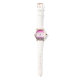 I only have one complaint. I ordered the watch with clear case and strap, and what was sent was white case and strap. I'm going to keep it because 1) it looks very nice in white, and 2) it would take too long to get a replacement made and sent in time for my occasion. Aside from the mix up with the color, the watch does look very good in white. The purple dial is actually sparkly which did not show in the online images. That was a nice surprise. If you like Swatch watches this is very similar to those. It's 33.6mm in diameter, 10.5mm thick, and 40.6mm lug to lug. Stainless steel case back says 3ATM/30m WR, so no swimming or showering or submerging this one. If you like Woodstock, this is a great choice.