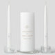 Classic style wedding unity candle set featuring a simple yet elegant design with your three initial monogram along with your names and wedding date in traditional serif fonts. Each taper has one of your initials.