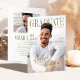 Magazine style graduation announcement and invitation feature gold color elegant graceful serif and script name with photos, more grad party details on the back, sophisticated and timeless, Custom it with your own photos and information.