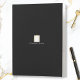 Elevate your brand with this timeless folder with a modern white and gold design. Add your customizable company name and text in white on a black background. Ideal for professionals across industries—from law firms to real estate agencies—this folder adds a touch of elegance to presentations, proposals, and client handouts.