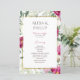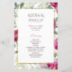 Invite your loved ones to celebrate your special day with this sophisticated wedding program card, designed to evoke timeless elegance and romance. Featuring an exquisite floral border in shades of deep magenta and ivory, the lush blooms frame a minimalistic and refined central design. The typography blends modern serif and classic fonts, creating a harmonious balance of contemporary and traditional elements. A subtle hint of pink in the ampersand adds a touch of whimsy to the layout, while a thin gold border lends a luxurious finish. Perfect for couples seeking a classy and elegant invitation that embodies both warmth and sophistication.