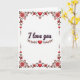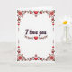 This design shows a white background surrounded by a winding green vine frame filled with flowers, berries, and hearts ❤️. In the center, the words “I love you” are written in deep plum cursive-style lettering, and they sit neatly inside the border. The corners are marked by large coral-pink flowers with darker centers, and smaller deep red flowers appear along the vine. You can also see clusters of ruby-red berries and lots of red hearts tucked between the leaves. Some of the larger hearts, including ones near the corners and one below the message, have little eye-like details that make them feel friendly and sweet 🥰. The mix of rich reds, greens, and soft pinks makes the message feel warm without needing anything else. It’s a meaningful card to give because it says “I love you” clearly while surrounding it with gentle symbols of care and closeness.