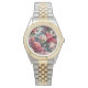 The watch is very nice, the picture is great and the watch looks like quality. The only problem I am having with it is that it is a little too large, and I also can't figure out how to open the clasp. No directions came with it. Very good. The printing is perfect and the watch keeps good time.