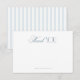 Send heartfelt appreciation with this elegant coastal blue stripe bridal shower thank you card featuring timeless script typography and classic vertical stripes. Perfect for a bridal shower, bridal brunch, garden celebration, or chic country club event, this soft blue and white design beautifully complements a something blue theme while offering a refined, preppy way to thank guests after your special celebration.