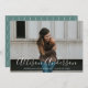 Elegant graduation announcement featuring the graduate's horizontal photo and graduate's name in a white calligraphy script overlay. Personalize the photo graduation announcement by adding the school name and graduation year. The announcement reverses to display a white trellis pattern and dark sage green background.