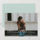Elegant graduation announcement featuring the graduate's horizontal photo and graduate's name in a white calligraphy script overlay. Personalize the photo graduation announcement by adding the school name and graduation year. The announcement reverses to display a white trellis pattern and mint green background.