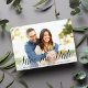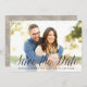 An elegant wedding save the date postcard designed to accommodate your favorite horizontal or landscape oriented full-bleed engagement photo. "Save the date" appears in off-black hand lettered calligraphy script with your names, wedding date and location beneath. Cards reverse to a subtle botanical pattern with space to include your wedding website url or any additional information you choose. You can change the back color by clicking Customize/Personalize and then selecting new background color either from the palette or by entering a color hex code.