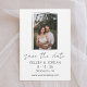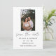 Capture the essence of timeless elegance with our beautifully designed Save the Date card, perfect for modern couples planning their dream wedding. This customizable template features a chic black and white design, with a hand-drawn bow framing your favorite photo, ensuring your special announcement stands out. The stylish script "Save the Date" along the side adds a touch of sophistication, while the simple and clean layout keeps the focus on your love story. Personalize with your names, wedding date, location, and website for a seamless and memorable invitation. Ideal for brides and grooms who appreciate understated elegance and contemporary design.