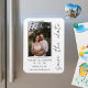 We received our photo magnet in a timely fashion and I was very pleased with the result. It was a little smaller than I thought it would be, but I honestly never looked that the dimensions. The magnet is durable and heavy enough to hold papers if needed. I love our new keepsake. The font is very clear.