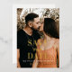 Make a lasting first impression with this sophisticated save our date, where bold mixed typography in gleaming real gold foil commands attention across a full-bleed couple photo on the front. The clean white reverse features a second photo alongside all your wedding details. A luxurious, editorial design fully customizable with your names, date, and photos.