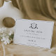Elegant vintage inspired botanical adorned, Black Monogram Crest, wedding save the date. Features, an elegant typography design style mix of script and bold type.