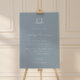 Elegant botanical adorned vintage wedding monogram crest, unplugged ceremony wedding foam board sign in dusty blue.