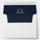Timeless Vines, 5x7 wedding invitation envelope. Envelope is lined in navy blue with white crest monogram detail. Features, return address on back flap in matching navy blue color.