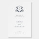 Elegant botanical adorned vintage style wedding monogram crest in navy blue and white, wedding welcome foam board sign.