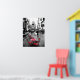 Black and white photograph of Times Square in New York City with red accents that capture your gaze