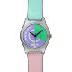 They color and design is exactly what I expected. Decent quality watch however the buckle is plastic that seems a little flimsy. They design is really cute and the colors were true to what showed online. If recommend offering a larger or oversized option since the is the design on the face and it is really quite small. It could be more of a statement pice of it was larger.