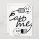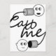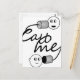 Retro-style design shows tin can phone with people on each end. In the middle the cord spells "Call Me."