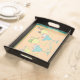 This is a well made, sturdy wooden tray with a flawless black finish and lovely map on the tray surface. It is both vintage & modern at the same time. Looks exactly like the photo; does not disappoint. So nice to find something of quality individually made and not the mass-produced 'shabby chic' merchandise seen in stores. I am so pleased to be able to give this to my college-age niece for her birthday. This can be used as a tray to hold jewelry or toiletries, or hung on the wall as art. The map surface is sealed (it is slightly shiny) so would be moisture resistant. It is well worth the asking price but I was able to apply a sale code as well. Very happy with my purchase. Map is crisp & clear and sealed with a water-resitant finish.