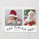 Minimal and modern holiday theme birth announcement photo template card featuring 2 photos of your newborn on the front with a fun typography text that says "the tiniest noel." You can also add another picture and message on the back. The background is white.