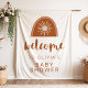 This baby shower welcome sign tapestry features a unique bohemian terracotta and rust rainbow with a sun in the middle. Easily edit most wording to meet the needs of your baby shower or event. 💜 COLORS ARE EDITABLE! Click 'edit design' to select your own colors.