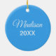 Lightweight, smooth, pure white ornament with nice sheen. Perfect size to be seen from across the room ... and to attract closer inspection! Price was great for ordering enough for the whole family! Clear, bold black design just as requested. Matches the order exactly. Just so nice!
