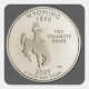Show your love for all thing Wyoming with this tinted version of the U.S. Mint's Wyoming State 2007 quarter design image (uncirculated reverse), featuring a bucking bronco. Charcoal gray background