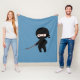 Cute but angry cartoon ninja dressed in black is holding a traditional Japanese katana sword.