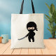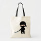 Cute but angry cartoon ninja dressed in black is holding a traditional Japanese katana sword.