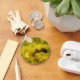 This keychain features a tiny red and black ant very busy feeding on the pollen of a goldenrod blossom on a sunny summer day. The yellow flowers and green leaves create a luminous background to set off this little creature.