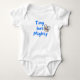 This cute and funny bodysuit features modern typography "Tiny but Mighty" in blue. Perfect for infants, newborn or baby shower gift.