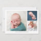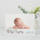 This stylish and elegant 2-sided photo birth announcement card features four (4) photos (front & back) of your newborn baby boy, custom text that can be personalized, and typography text that says "Tiny But Mighty." Customize this product by adding your newborn baby's name, pictures, birth record, and the parents' names.
