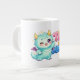 Adorable turquoise fluffy dragon with rosy cheeks and playful pink lettering, ideal for apparel and cheerful, whimsical outfits.