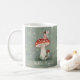 Tiny fairy perched on top of mushroom and glowing coffee mug