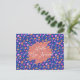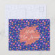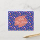 Hand-drawn floral postcard with custom text on the front. Say hello to a friend, with a pretty postcard design. Colorful, tiny flowers on blue and the design carries to the back of the card. Sample text on the front, over an orange paintbrush layer is, "Hello my friend". Customize it to any greeting.
