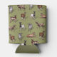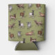 This can cooler features a herd of tiny goats in all different colors on a muted green background.