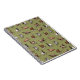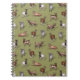 This notebook features a herd of tiny goats in all different colors on a muted green background.
