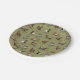 These paper plates feature a herd of tiny goats in all different colors on a muted green background.
