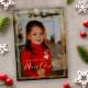 Tiny Gold Bead Frame Merry Christmas Photo Foil Holiday Card