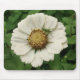 Photo of a tiny grasshopper or grasshopper-type bug sitting on a white zinnia.
