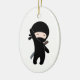 Happy cartoon ninja dressed in black with arm raised in waving. Traditional Japanese sword katana can be seen attached over his shoulder.