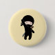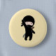 Happy cartoon ninja dressed in black with arm raised in waving. Traditional Japanese sword katana can be seen attached over his shoulder.