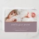 Sweet and elegant birth announcement features two newborn photos aligned side by side, with a band of rose gold foil beneath. Personalize with baby's name, birth stats, and a family message, adorned with a small rose gold foil heart on a dusty purple background.