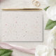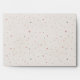 This envelope features a delicate pattern of tiny hand-drawn hearts scattered across a soft neutral background.