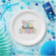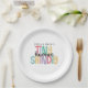 A cute couple's baby shower theme in bright cheerful colors, this stylish Tiny Human Shindig paper plate has a super fun and playful baby shower theme that works perfectly for a co-ed gathering of friends and family. It's casual, inclusive, with a great vibe! Multicolored text and in gender-neutral combination of mustard yellow, aqua teal, retro pink, green, and lilac make the design pop with a whimsical vibe. Plates are available in 2 sizes: 9-inch diameter and 7-inch diameter.