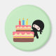 Tiny Ninja Behind Birthday Cake Green Magnet