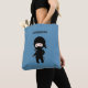 Cute cartoon ninja dressed in black is holding a throwing star. Traditional Japanese sword katana can be seen attached over his shoulder.