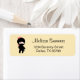 Cute cartoon ninja girl is dressed all in black but for a pink bow on top of her head mask. Traditional Japanese sword katana can be seen attached over her shoulder, it’s handle also colored pink.
