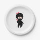 Cute cartoon ninja girl is dressed all in black but for a pink bow on top of her head mask. Traditional Japanese sword katana can be seen attached over her shoulder, it’s handle also colored pink.