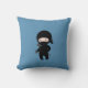 Tiny Ninja Holding Throwing Star on Blue Throw Pillow